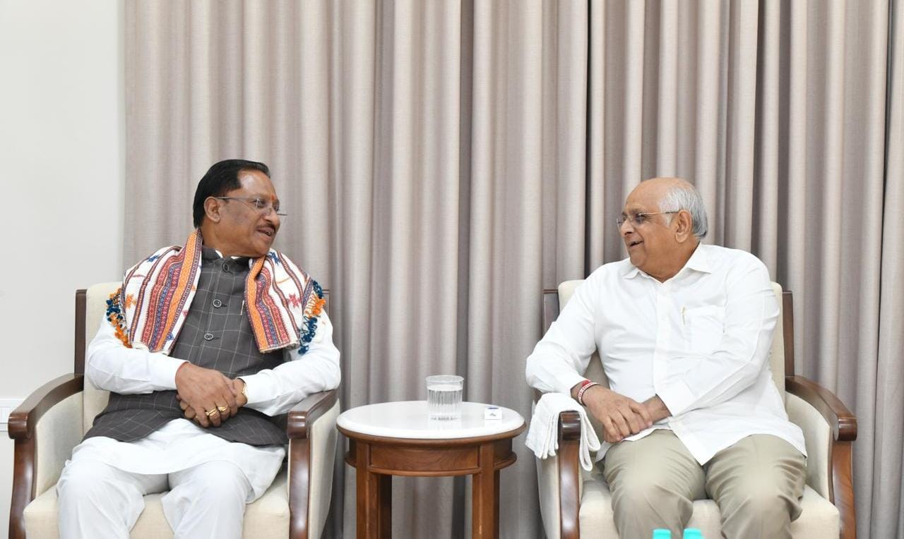 मुख्यमंत्री श्री विष्णु देव साय ने आज गांधीनगर स्थित मुख्यमंत्री आवास में गुजरात के मुख्यमंत्री श्री भूपेंद्र पटेल से सौजन्य भेंट की। इस अवसर पर दोनों मुख्यमंत्रियों ने परस्पर सहयोग एवं विकास के अनुभव साझा किए।