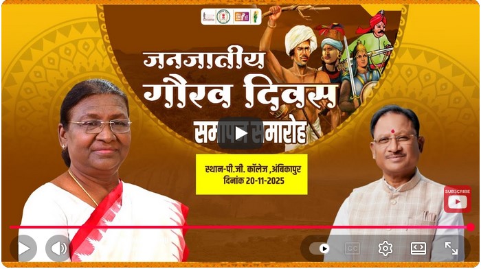 Share Facebook Twitter LinkedIn WhatsApp Pinterest Email https://www.youtube.com/live/5jhg7ub1YuQ जनजातीय गौरव दिवस मुख्यमंत्री श्री विष्णुदेव साय राष्ट्रपति द्रौपदी मुर्मू