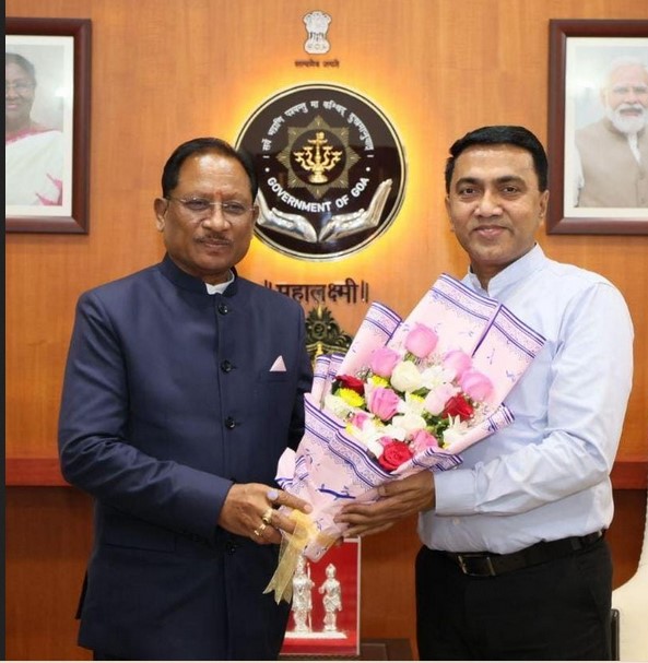 मुख्यमंत्री श्री विष्णुदेव साय ने आज गोवा प्रवास के दौरान गोवा के मुख्यमंत्री डॉ. प्रमोद सावंत से सौजन्य मुलाकात की। इस अवसर पर दोनों मुख्यमंत्रियों के बीच आपसी सहयोग और साझा हितों से जुड़े विषयों पर आत्मीय चर्चा हुई।