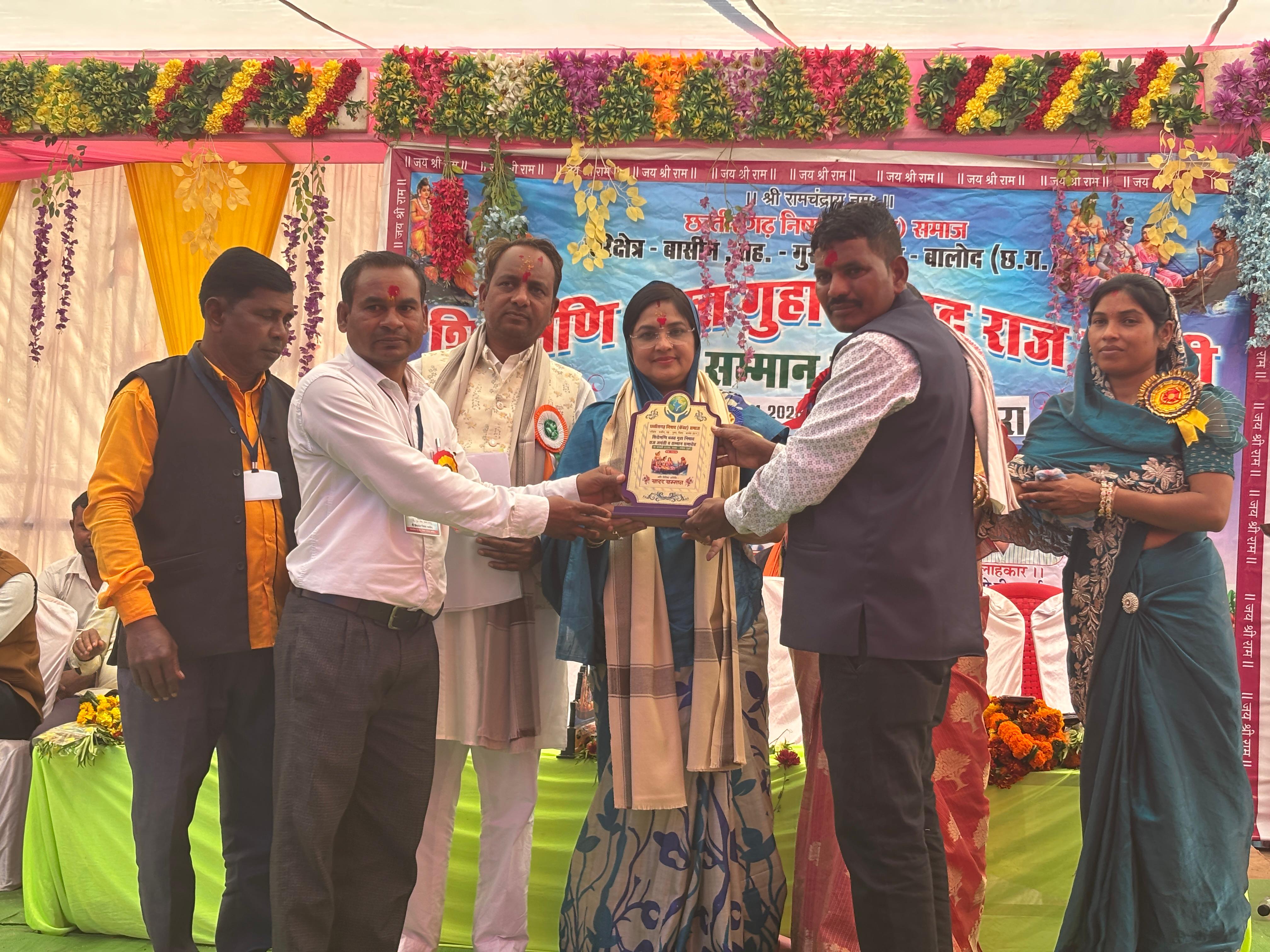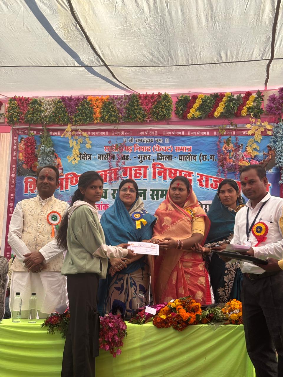 कार्यक्रम में छत्तीसगढ़ निषाद समाज की ओर से उपस्थित अतिथियों का प्रतीक चिन्ह भेंट कर सम्मान किया गया।