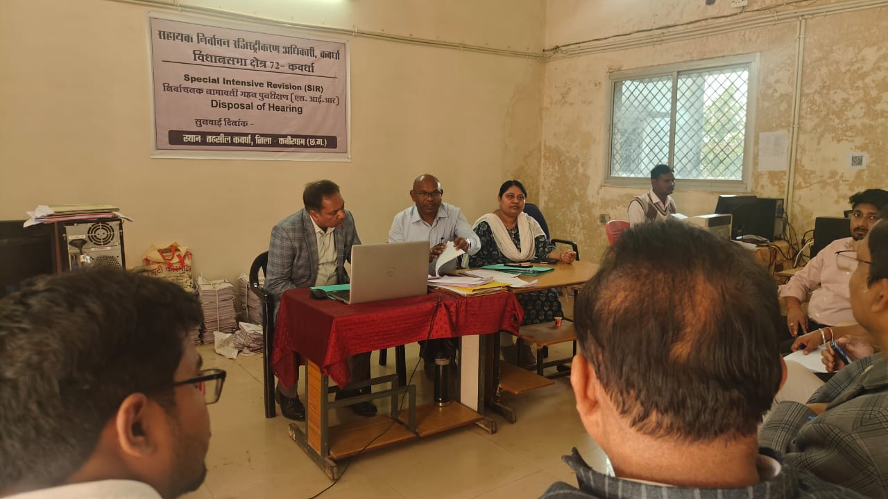 उन्होंने तहसील कार्यालय कवर्धा में नो मैपिंग एवं तार्किक त्रुटियों से संबंधित मतदाताओं की सुनवाई के दौरान प्रस्तुत दस्तावेजों का निरीक्षण किया। इस अवसर पर तहसीलदार एवं सहायक निर्वाचक रजिस्ट्रीकरण अधिकारी द्वारा किए जा रहे कार्यों की समीक्षा कर आवश्यक दिशा-निर्देश दिए गए।