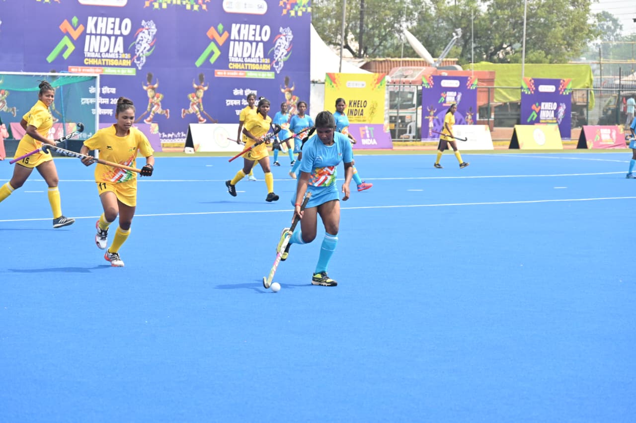 खेलो इंडिया ट्राइबल गेम्स के अंतर्गत राजधानी रायपुर स्थित सरदार वल्लभभाई पटेल इंटरनेशनल हॉकी स्टेडियम में आज तीसरे दिन महिला हॉकी प्रतियोगिता के मुकाबले खेले गए।